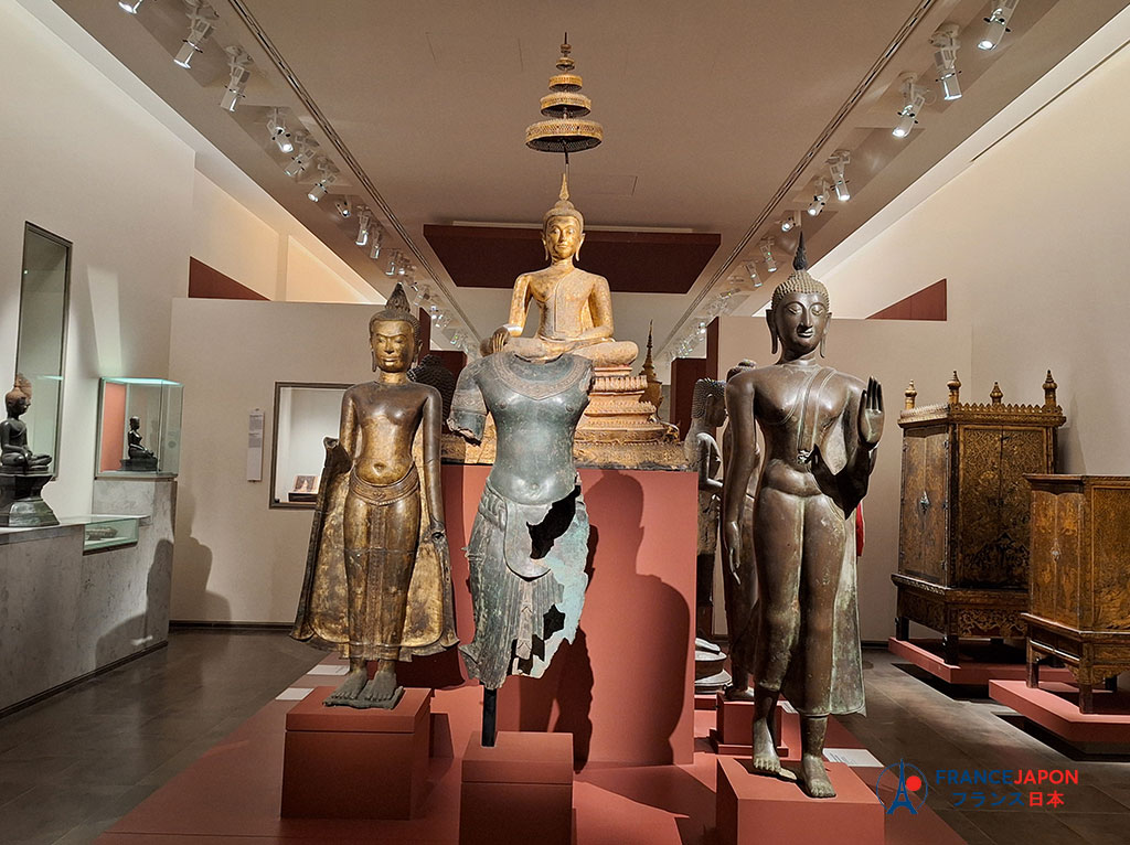 Le parcours débute souvent par les salles consacrées au bouddhisme. Elles donnent le ton : sobriété, lumière tamisée, tension entre puissance et sérénité.